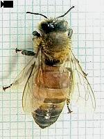 被害・対策 オオスズメバチより小さくておとなしい。巣は小型で多くは梢にあり、近くで刺激すると攻撃される。 越冬♀。 |